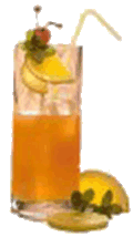 und in das zur Hälfte mit Eiswürfeln gefüllte Glas abseihen. Mit einem Ananasstück und einer Cocktailkirsche garnieren. Es kann auch mit Zitronen- und/oder Orangenscheibe garniert werden. |