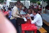 | Tanja hatte uns einige Luftballons von "Nivea" besorgt. Die Reaktion der Leute darauf war, dass sie uns nach Nivea-Creme gefragt haben. (wir hatten ja auch hellblaue T-Shirts an auf denen unsere Namen standen. >Sie dachten wir würden Werbung machen< | ||||