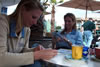 | Endlich eine kleine Pause. Britta schreibt gerade eine Karte an Christoph W. aus H. | ||||